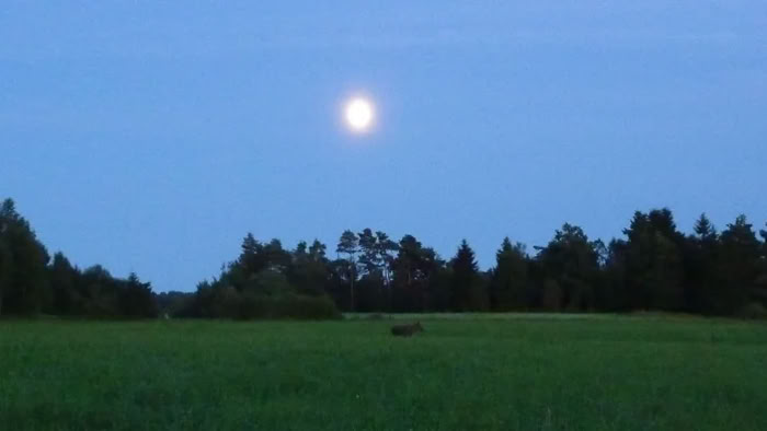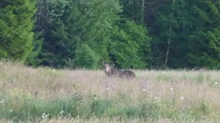 Am Zweiten Abend fuhr ich die Straße ein Stück östlich, um meine Zusatzbatterie für die Nacht zu laden. Nach 13 km entdeckte ich dann Elch Nr. 4. am Waldesrand. Bilder und Video zeigte ich sogleich meinen Womonachbarn, die zwar schon seit einiger Zeit in Schweden unterwegs waren, aber noch keinen Elch zu Gesicht bekommen hatten. Wie auch, wenn man Abends nur im Womo hockt.