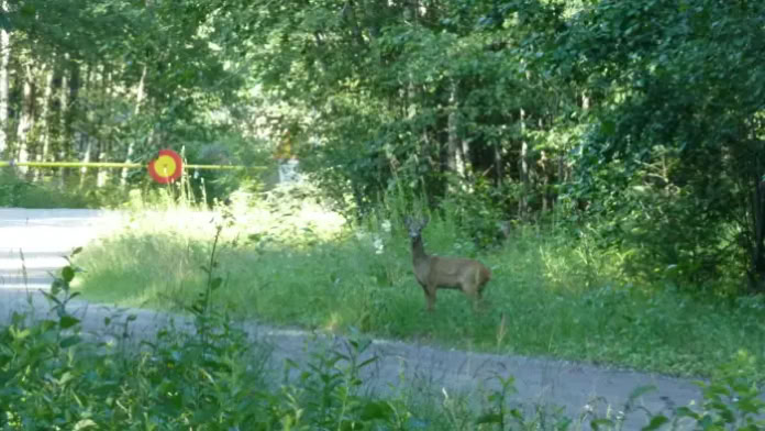 Keine 300 m vom Badeplatz entfernt, stand ich diesem Rehbock gegenüber.