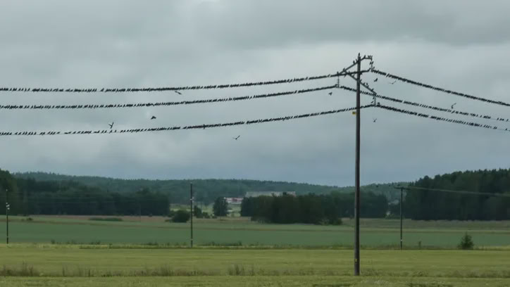Solch große Ansammlungen von Saatkrähen auf Überlandleitungen gab es in meiner Jugend auch in Deutschland.