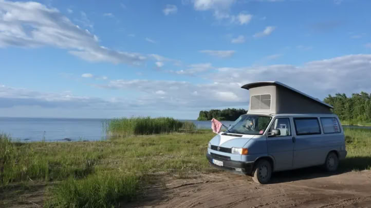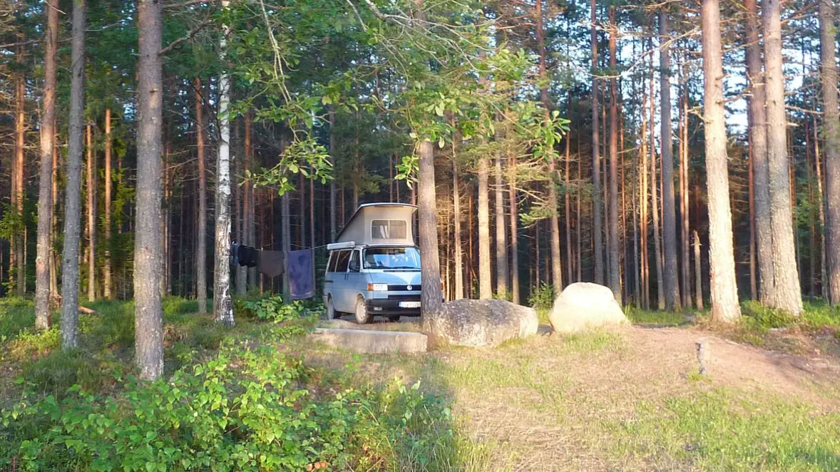 In der Nacht fing es an zu regnen und hörte erst am folgenden Nachmittag wieder auf. Ich versetzte meinen Wagen am Morgen zum 200 m langen Sandstrand. Während des Vormittages konnte ich einem Fischadler beobachten, der entlang der vorgelagerten Insel segelte und nach Beute suchte. Ich hatte ihn aber leider nie gesehen, wie er sich ins Wasser hinabstürzte. Gegen 15 Uhr klarte das Wetter endlich auf. Weil das Wasser zu flach zum schwimmen war, machte ich einen Spaziergang im angrenzenden Wald, um mich endlich körperlich zu bewegen. Sechs Stunden im Auto sitzen können ganz schön nerven.