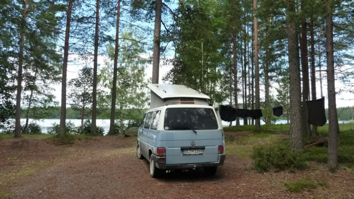 Es sieht so aus, also ich verbotenerweise Campe. Aber ich habe lediglich die Badewäsche an einer Leine. Und ich habe an diesem Badeplatz beide Nächte an der gleichen Stelle gestanden.