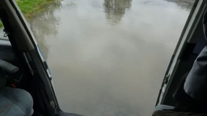 Am nächsten Mittag hieß es "Land unter" auf dem Parkplatz.