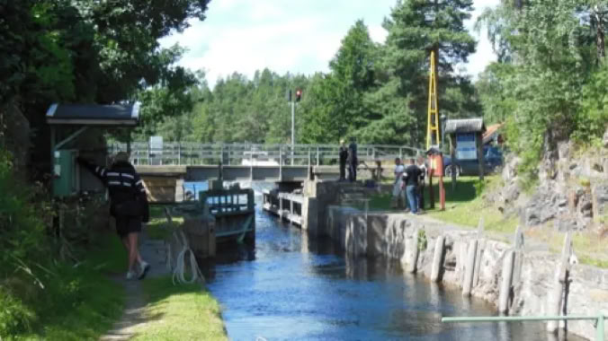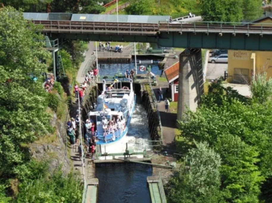 Wie ich oben schon geschrieben habe, fahre ich jetzt schon seit 15 Jahren nach Håverud. Aber ich habe es in all den Jahren nicht geschafft, ein Schiff beim befahren des Aquädukts zu beobachten, geschweige denn, zu fotografieren. In diesem Jahr war es endlich soweit!