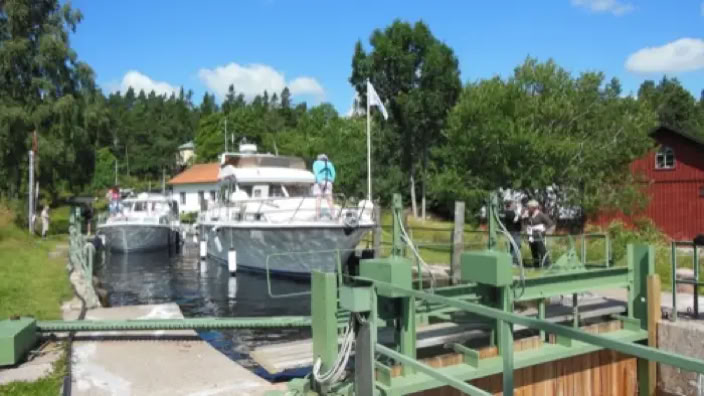 Na Endlich. Die überaus hübsche Schleusenwärterin beginnt mit dem Schleusen.
