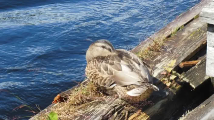 DieseStockentehält ihren Mittagsschlaf am Kanalzulauf. Schlau, denn bei den vielen Menschen ist sie vor Feinden sicher.